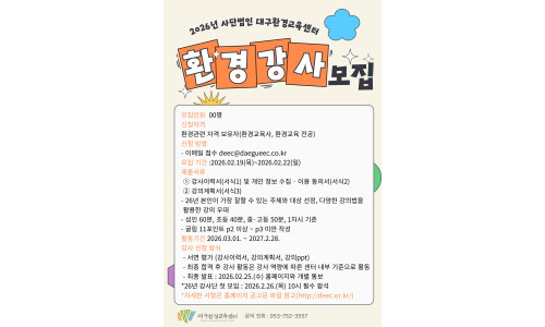 [사단법인 대구환경교육센터]2026년 환경강사 모집